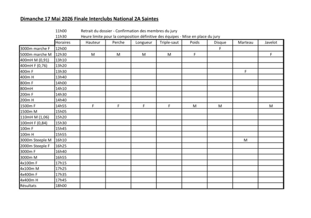 - Dimanche 26 avril 2026 Championnats de France d’Ekiden Chatelaillon – Infos à venir